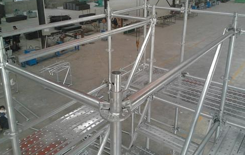 圓盤腳手架安裝方法是極快的,安裝時只需將橫桿接頭對準(zhǔn)菊花盤位置,然后用手將插銷插入菊花盤孔并穿出接頭底部,再用手錘敲擊插銷頂部,使橫桿接頭上的圓弧面與立桿緊密結(jié)合。