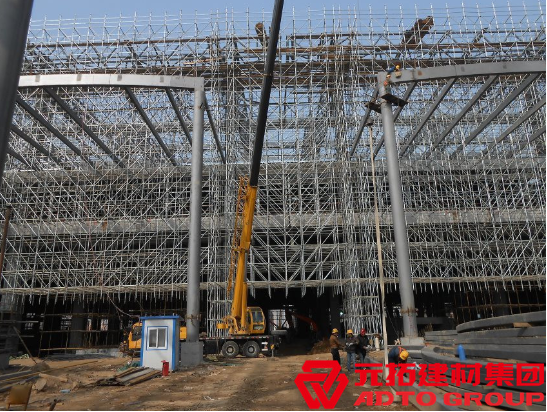 新型盤扣式腳手架優(yōu)點(diǎn)眾多,其中就節(jié)約了大量用鋼量,摒棄了傳統(tǒng)腳手架的活動(dòng)零配件易丟失、易損壞的問題,并且與普通碗扣腳手架相比較,用鋼量高達(dá)2/3以上的節(jié)約量